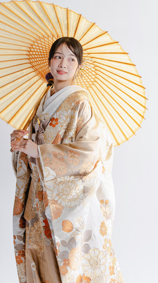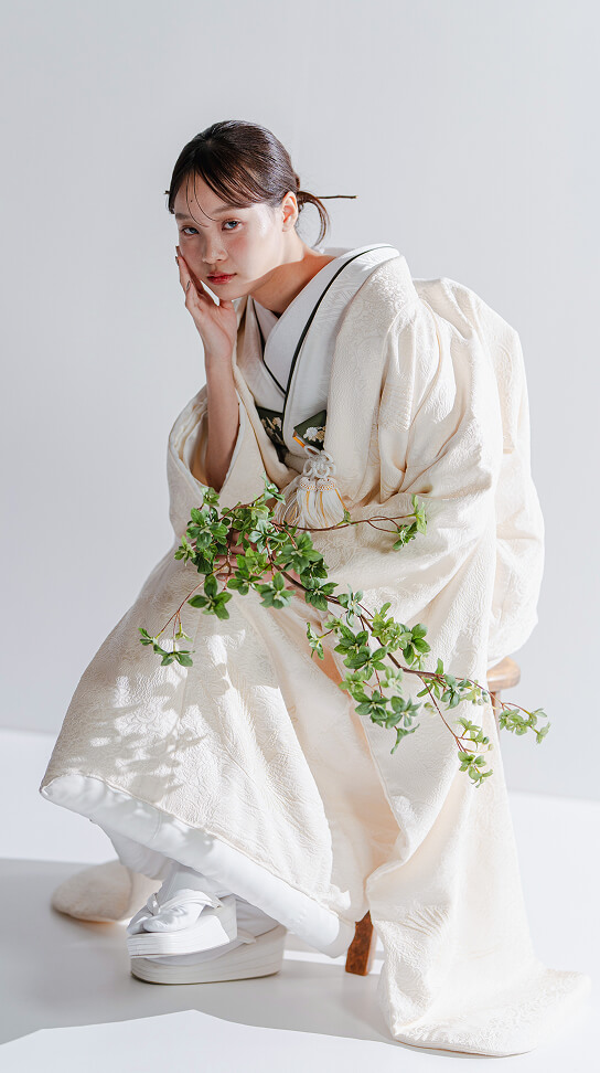 花嫁の和装も多彩に。清らかな白無垢は、白のトーンや生地、文様や織りもさまざまに。色柄豊富な打掛はお好みや季節に合わせても。引き振袖ならヘアアレンジや小物づかいで軽やかに。