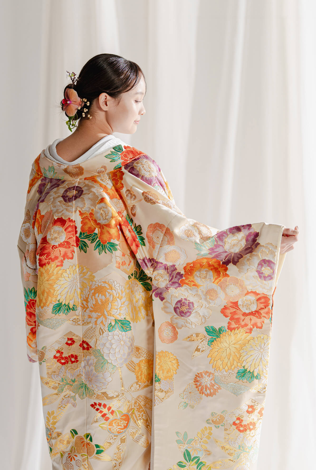 衣裳とのバランスやお顔の輪郭に合わせて。プロの技術でイメージ通りのお姿に仕上げます。小物合わせもおまかせを。