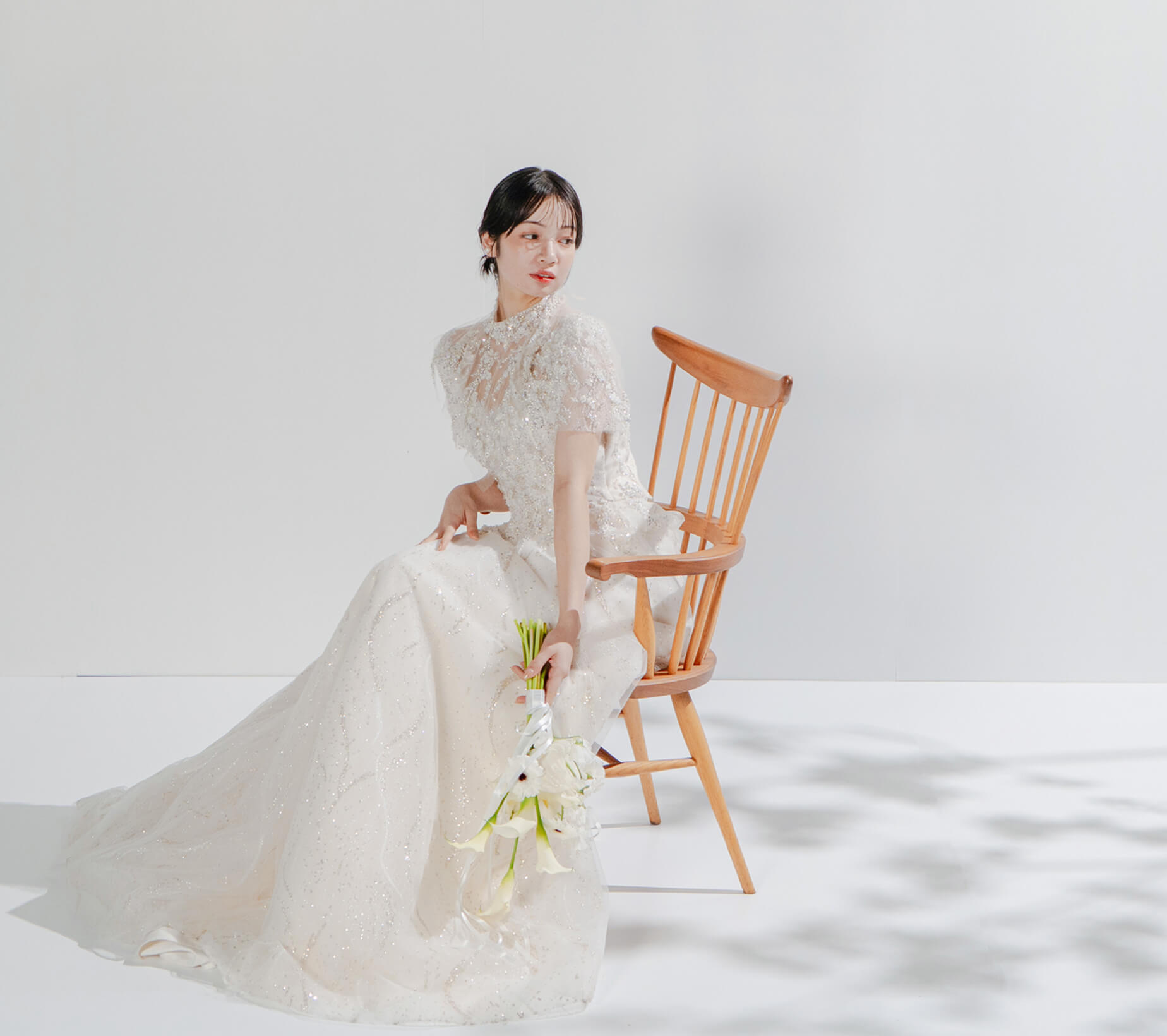 衣裳だけではなく、小物や空間とも調和がとれている美しい花嫁姿を。