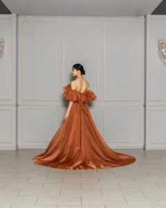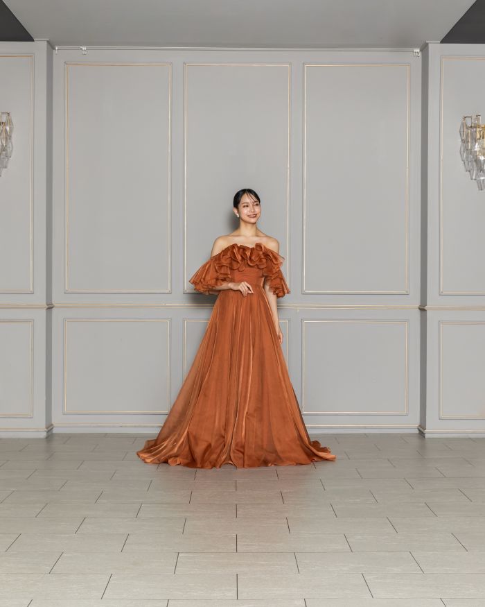秋にピッタリなテラコッタカラーとボリューム感たっぷりなオフショルダーはトレンド感を抑えたスタイリッシュな1着です🍁