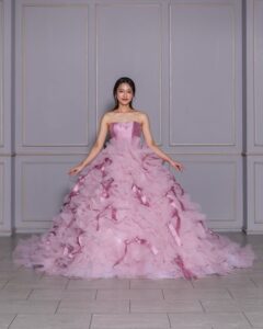 ふわっふわのチュールとたっぷりのリボンが最上級にキュートなデザイン💕結婚式に相応しい主役ドレスです⋆