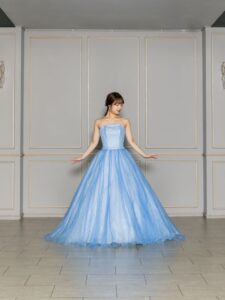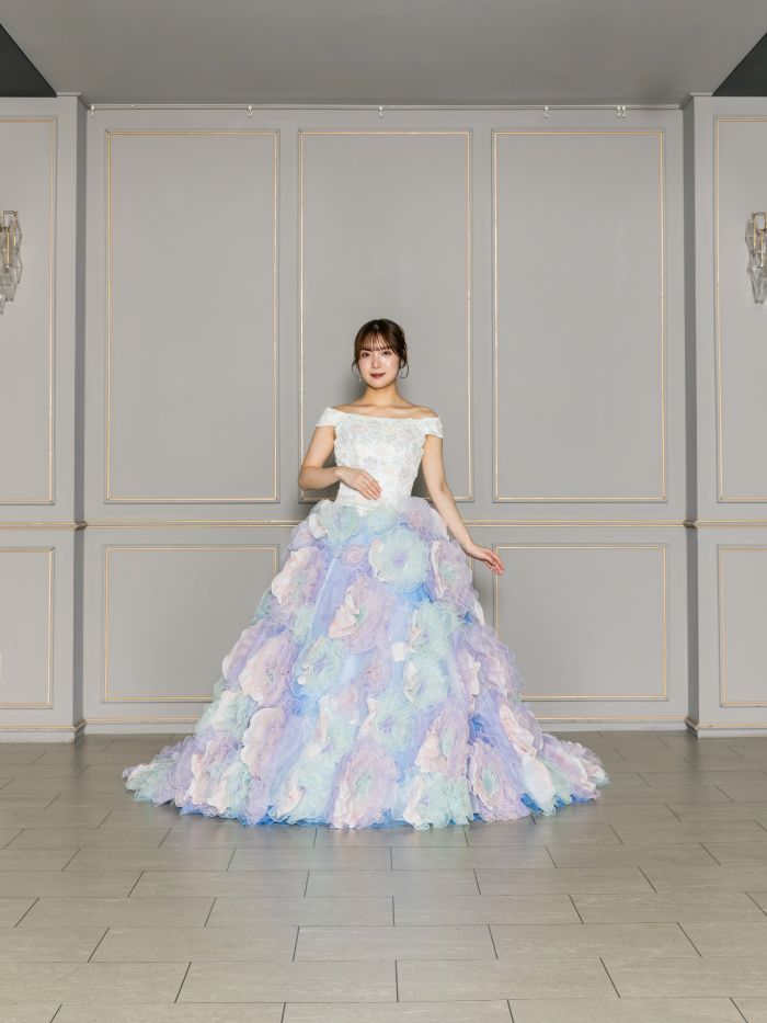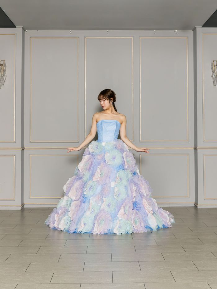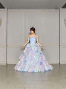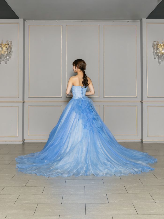 透け感のあるスカイブルーは夏のご結婚式にオススメ☁ ボレロとオーバースカートでガラッとイメージチェンジができちゃいます◎