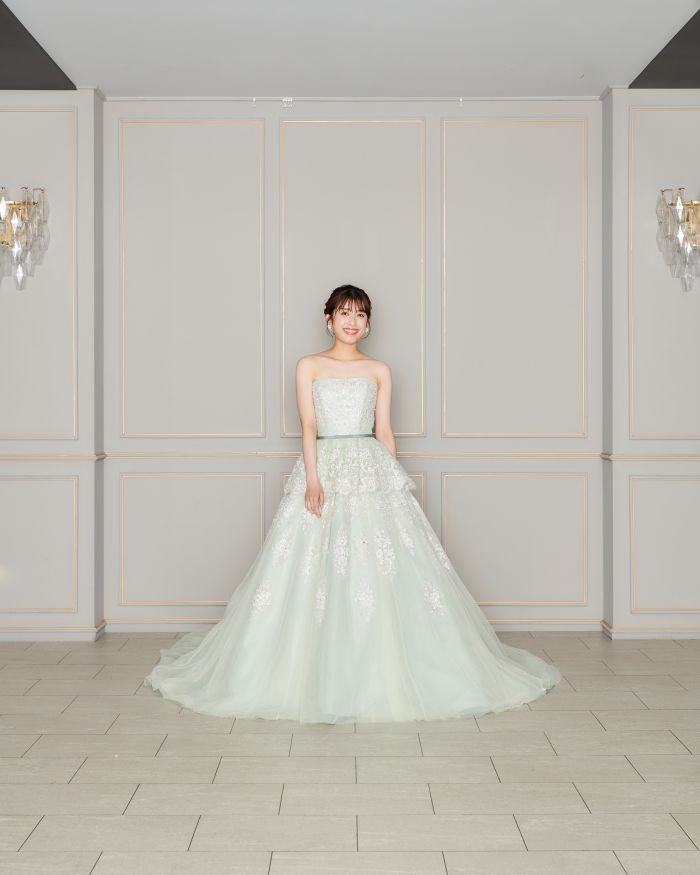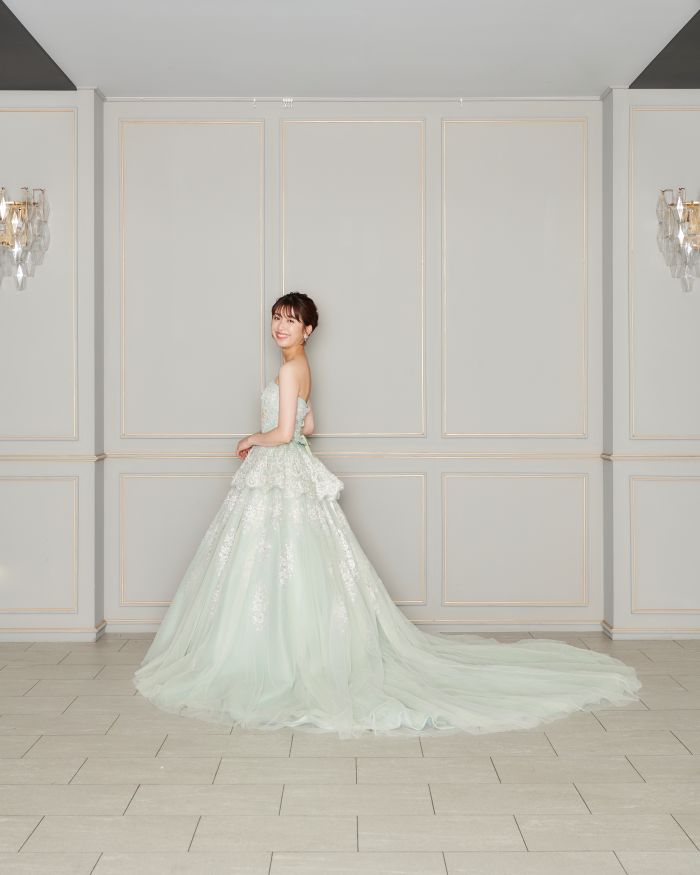 レース×プリーツは洗練された大人の印象に。ディティールにこだわったデザインは、おしゃれ花嫁にぴったりです。