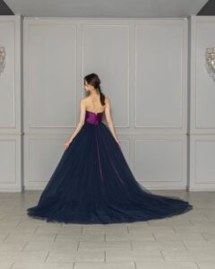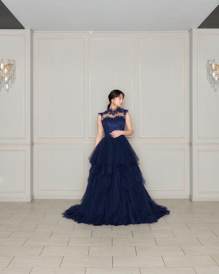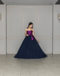 パープル×ネイビーのバイカラーが美しいカラードレス。