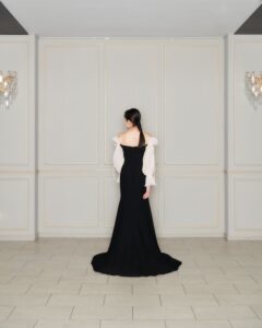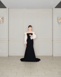 オシャレなブラックのマーメイドデザインにアイボリーのボリューム袖がアクセント🎀