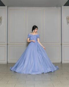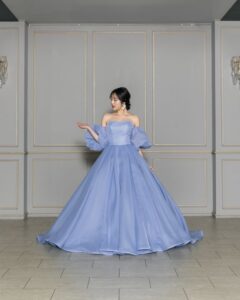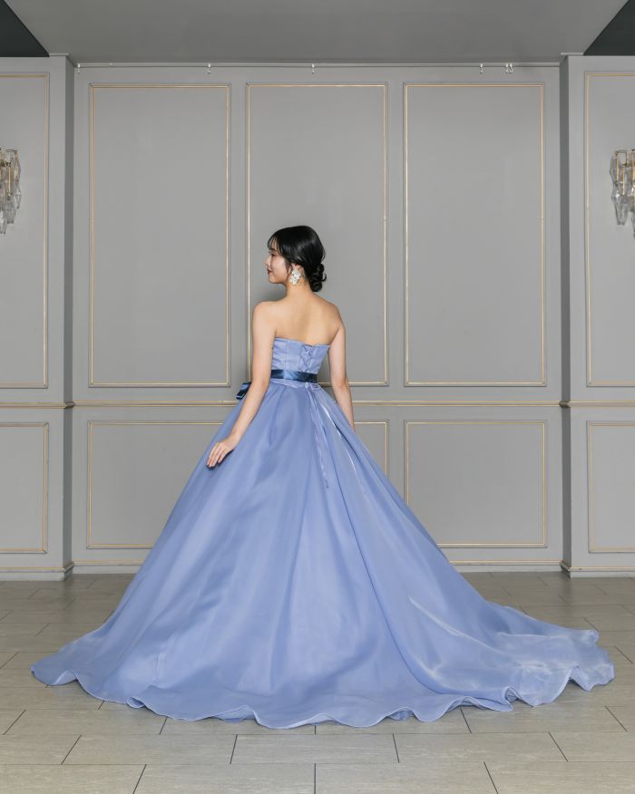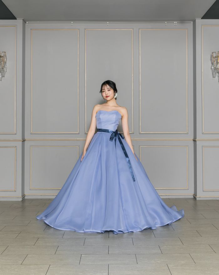 透明感のあるブルーと柔らかな素材感が相性バッチリ〇 3Wayのお袖が可愛らしい印象から上品な印象まで表現できます!
