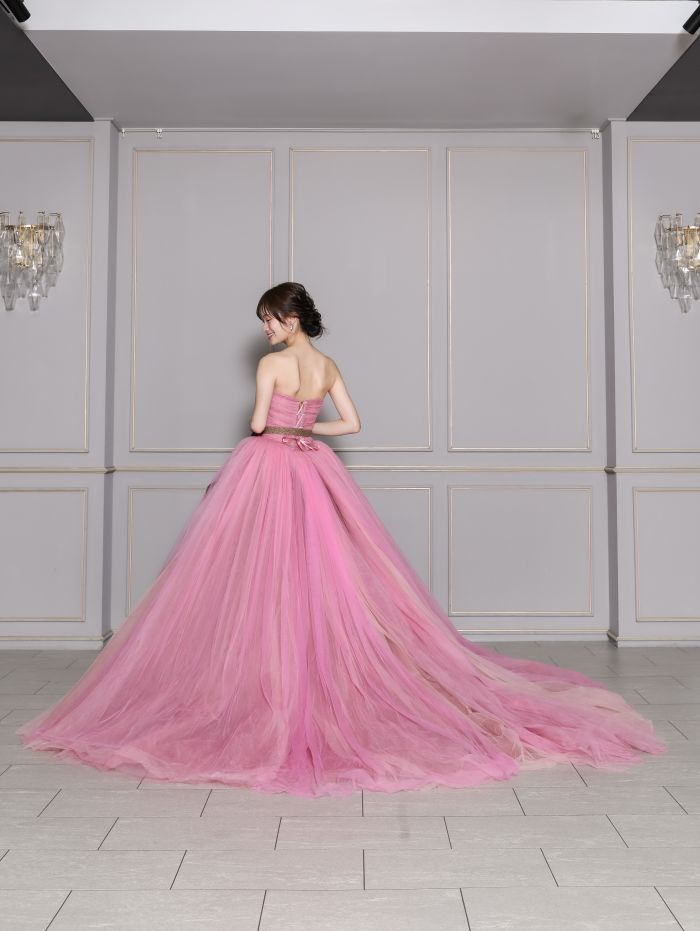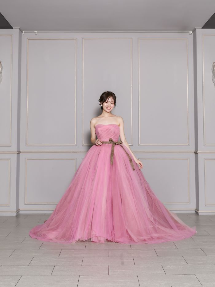 ブライトトーンのピンクは写真映えする華やかさ!THEプリンセスラインで会場でも存在感を放ちます💖