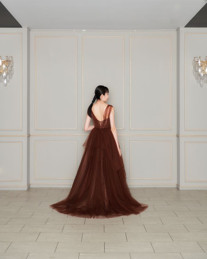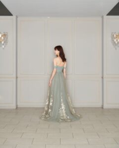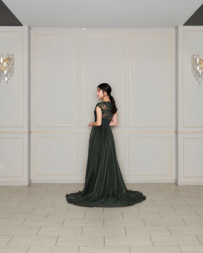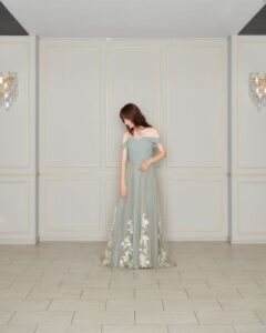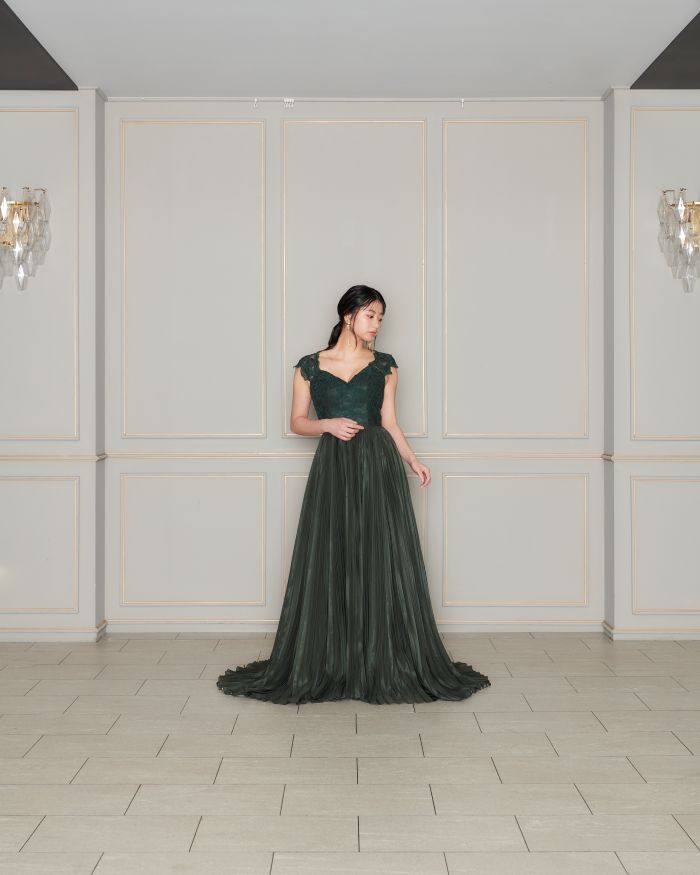 柔らかいグリーンと軽やかな素材が自然体なスタイルにしてくれます ゲストとの距離が縮まるスレンダーなシルエットも魅力的です🍃