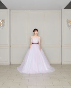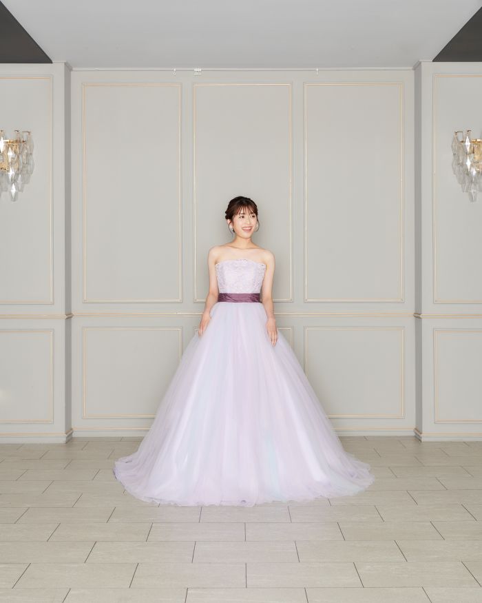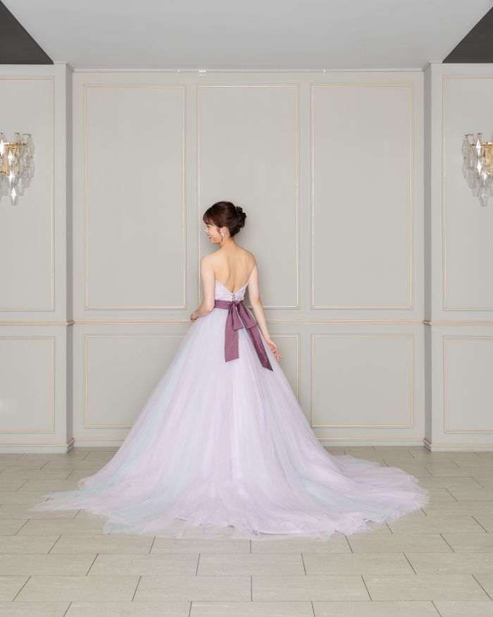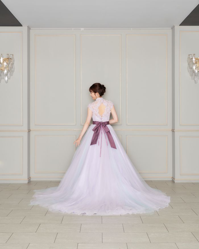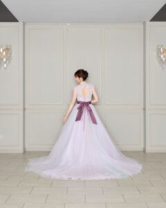 つけ外し可能なボレロはエレガントさをプラスしてくれます。 スカート部分には水色のチュールが混ざり、どこか爽やかな雰囲気に♬