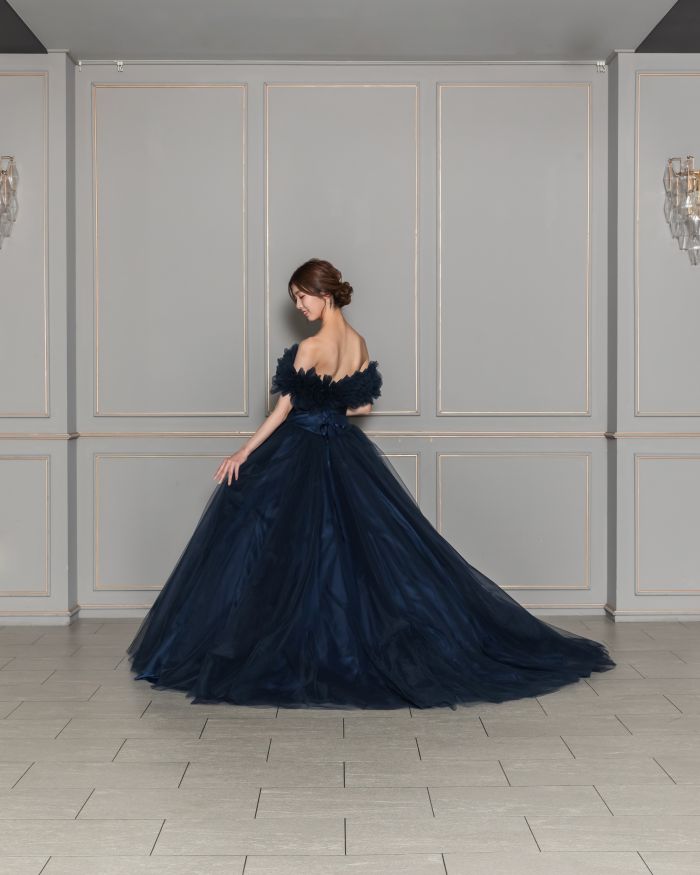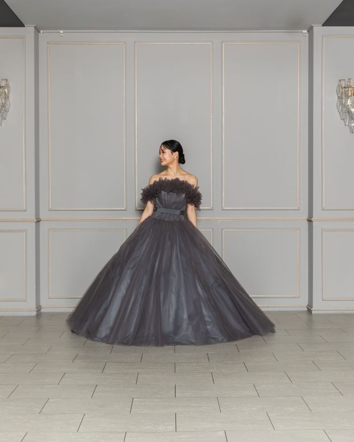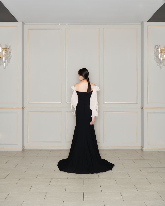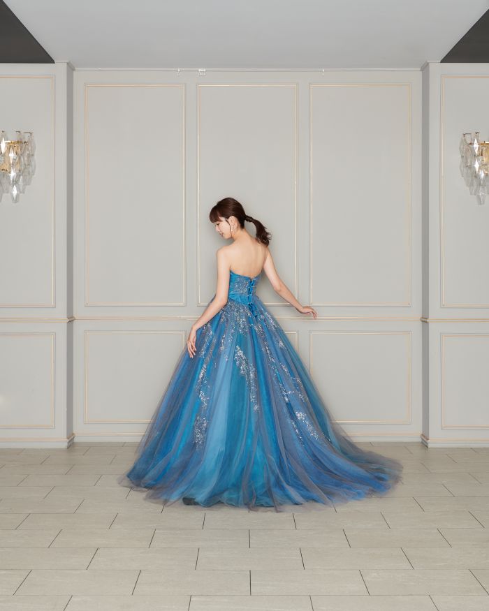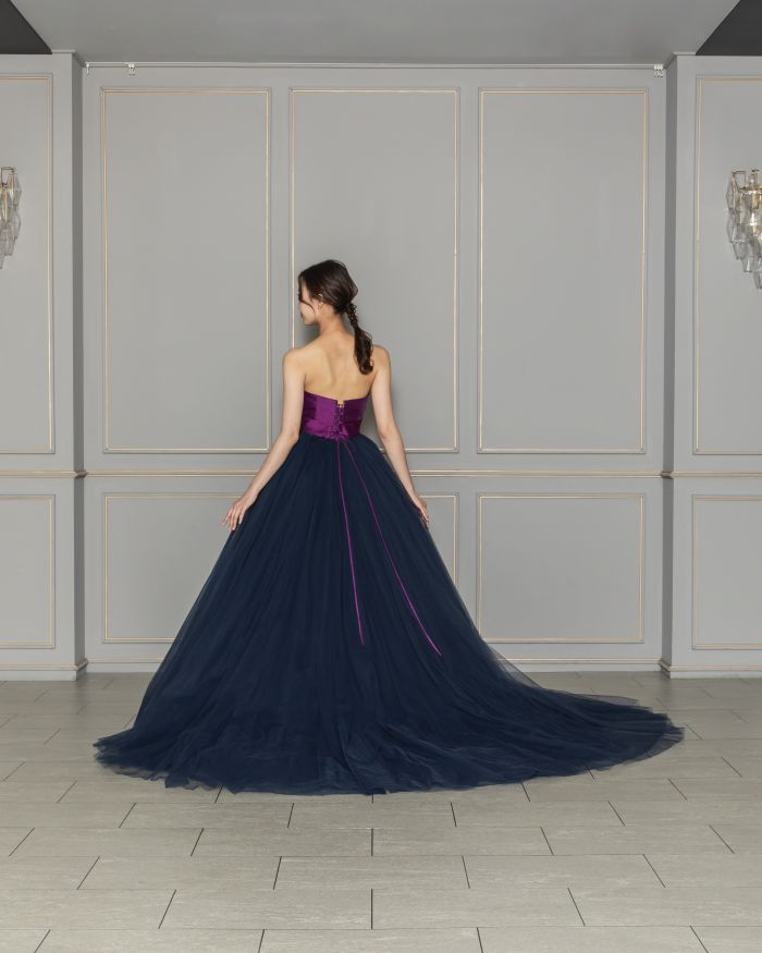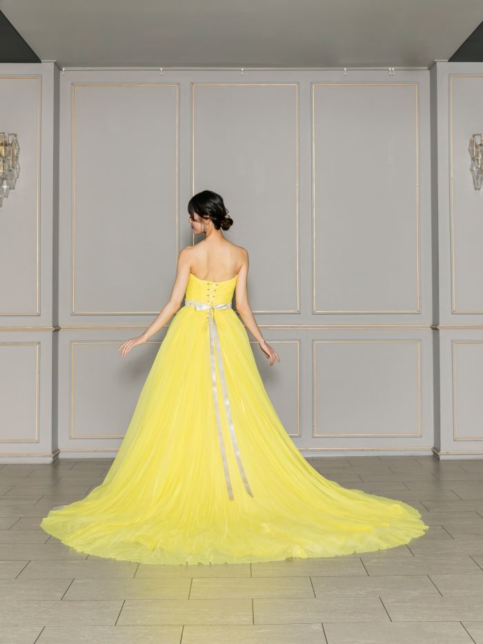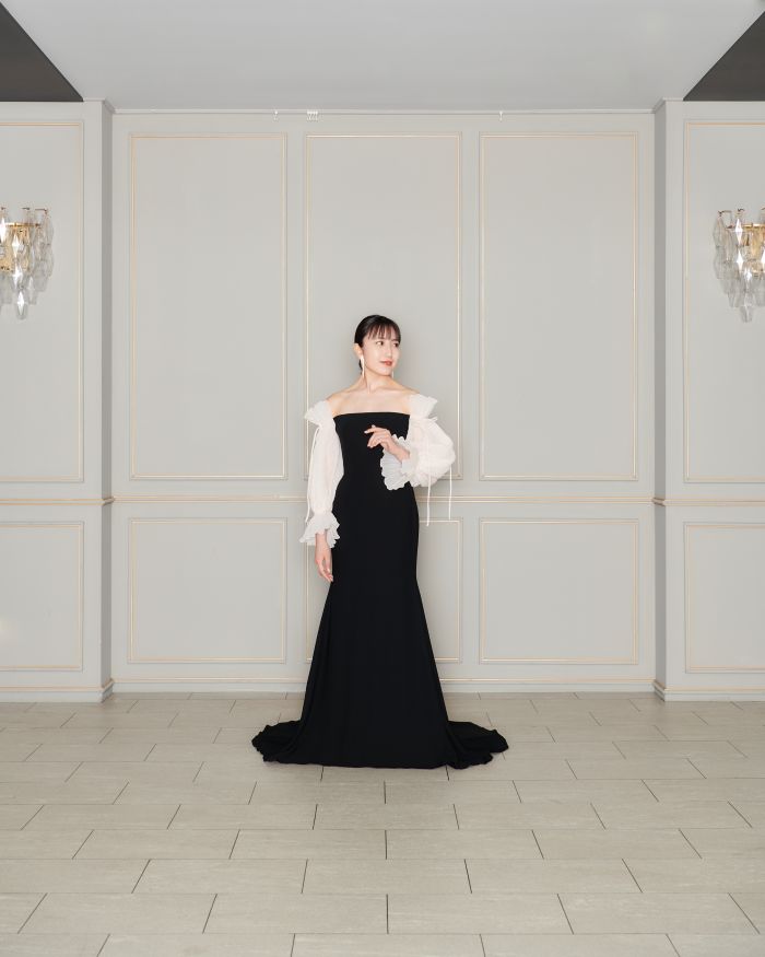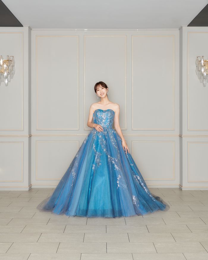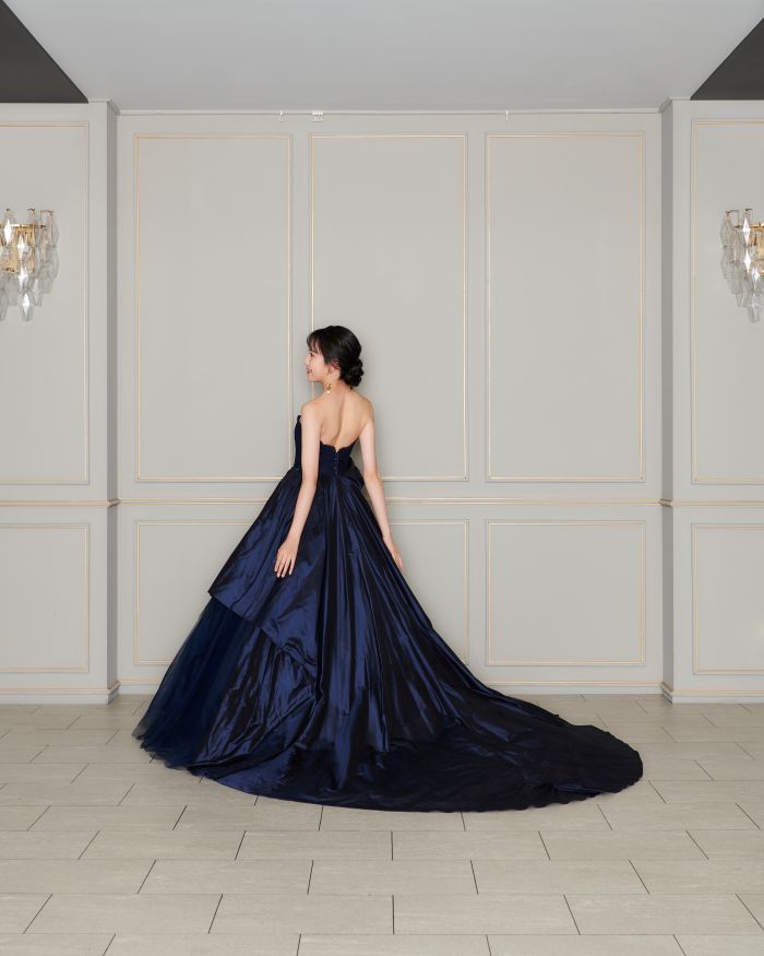 上品でエレガントな赤のサテンドレス。ウエストマークビジューが華やかさをプラスしてくれます。
