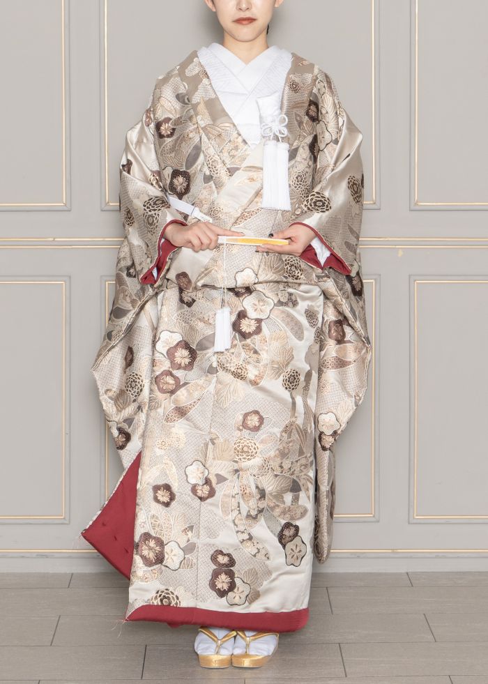 落ち着きのあるニュートラルカラーが特徴。現代的で親しみやすい色合いは、花嫁を引き立て優雅な雰囲気を演出します。