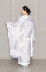艶のある生地に洋風なお花の刺繍がオシャレなデザインの白無垢です。
