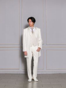 柔らかいアイボリーカラー×華やかなシャンパンゴールドで憧れの王子様スタイルに。